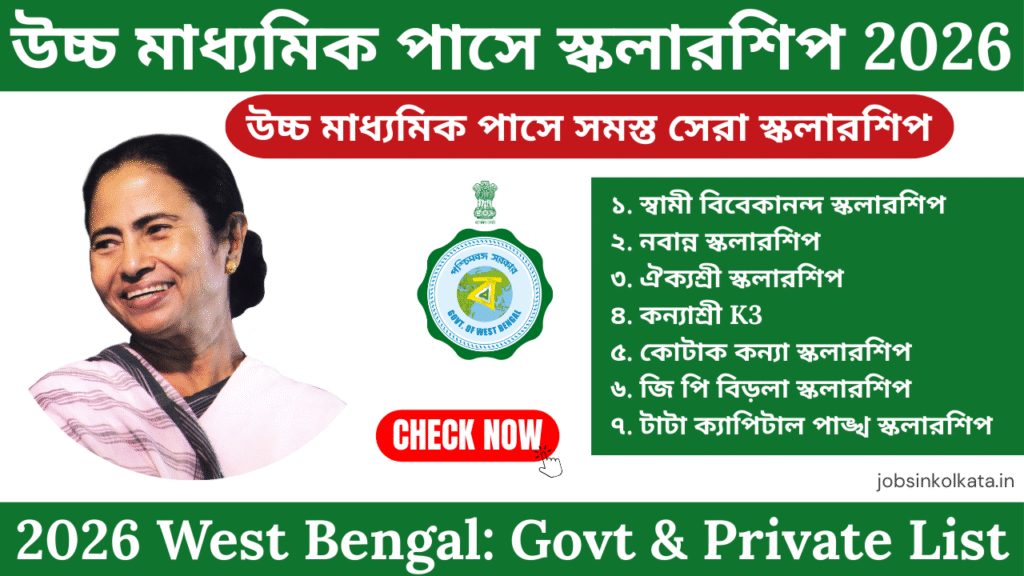 Check the complete list of HS pass scholarships 2026 in West Bengal. Details on SVMCM, Nabanna, K3, TATA, and GP Birla scholarship eligibility and apply online links.